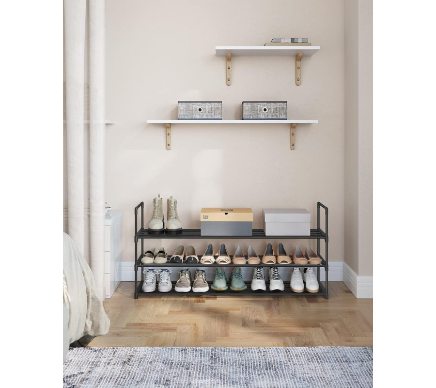Apavu uzglabāšanas organizators, metāla uzglabāšanas plaukts, vertikāls vai apgriezts otrādi, piemērots 20 līdz 24 pāriem, 30 x 117 x 55 cm, melns.