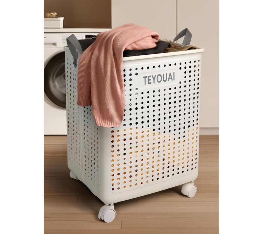 Kuba formas uzglabāšanas tvertnes organizators uz riteņiem, izturīgs, ventilēts, salokāms veļas grozs, lielas ietilpības.