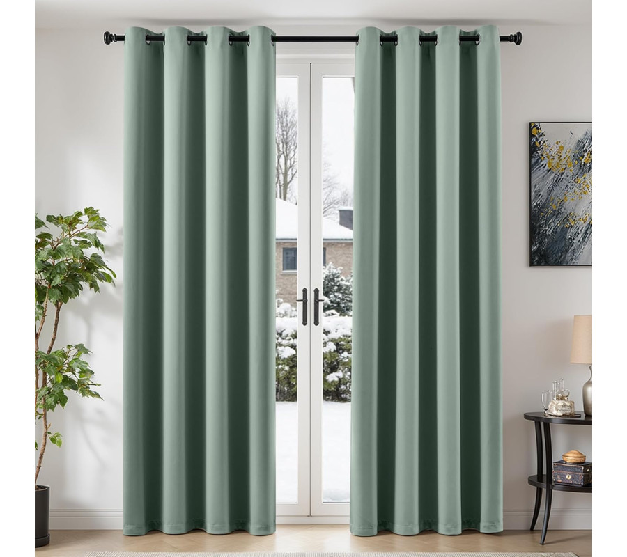 TOPICK 2 paneļu necaurspīdīgi aizkari ar metāla riņķiem, logu dekorēšanai, 245 x 140 cm, aptumšojošie aizkari guļamistabai un viesistabai, moderni, salvijas zaļā krāsā.