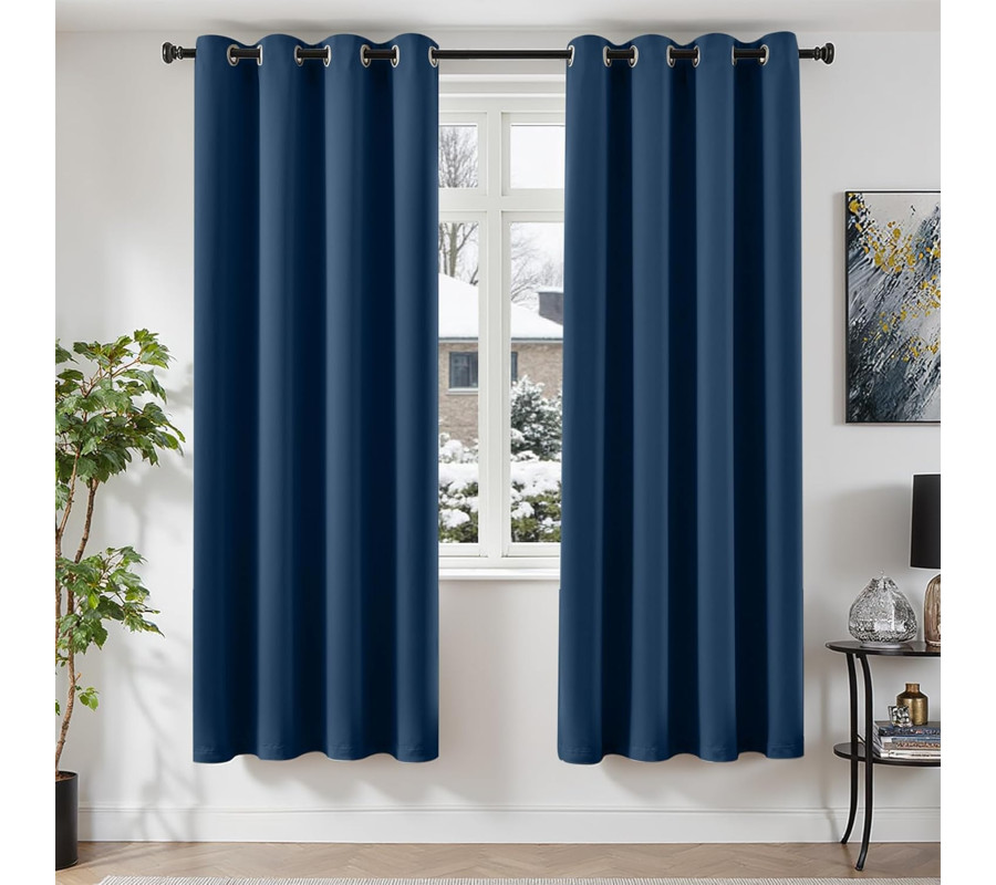 TOPICK aptumšojošie aizkari ar riņķiem (eyelets), necaurspīdīgi logu dekora aizkari, 220 x 140 cm, komplekts no 2 gab., guļamistabai, durvīm un viesistabas logiem, tumši zilā krāsā.