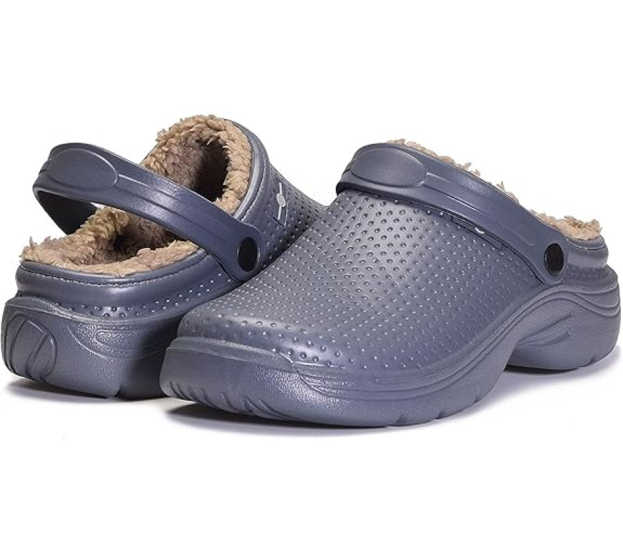 Siltas mājas un dārza čības ar mīkstu plīša/flīsa oderi, kas nodrošina komfortu aukstā laikā. Apavi ir ūdensizturīgi, ar neslīdošu zoli, piemēroti gan lietošanai iekštelpās, gan ārā.