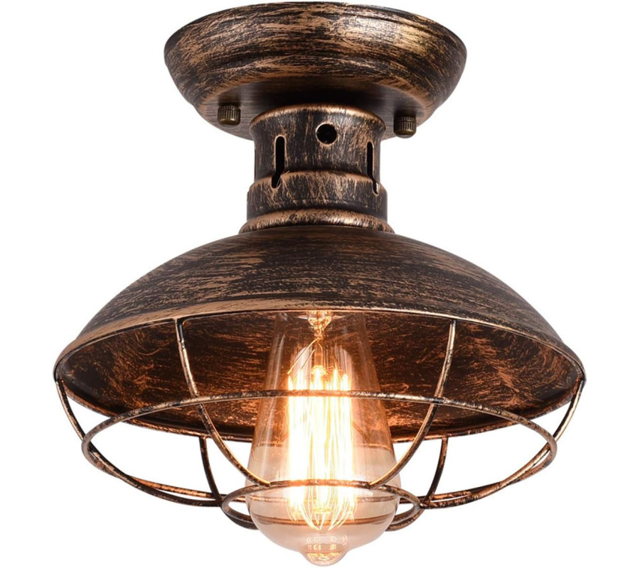 Apaļš metāla griestu apgaismojums, retro griestu gaismeklis ar E27 ligzdu guļamistabai, virtuvei, vannas istabai, ēdamistabai, balkonam, koridoram, bronzas krāsā [A enerģijas klase].