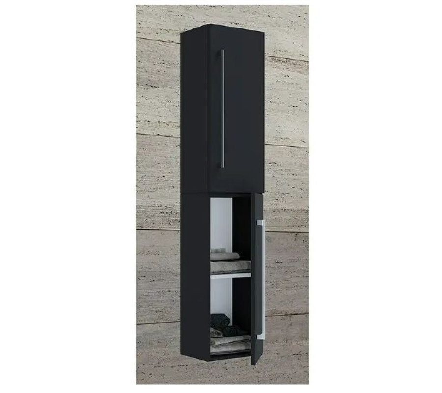 VCM Badinos augstais skapis izceļas ar modernu un elegantu dizainu. Augstajam skapim ir divas durvis, divi alumīnija izskata rokturi un divi iekšējie plaukti. Aiz durvīm ir pietiekami daudz vietas jūsu vannas istabas piederumiem. Pateicoties melamina pārklājumam, augstais skapis ir īpaši viegli tīrāms un izturīgs pret mitrumu.