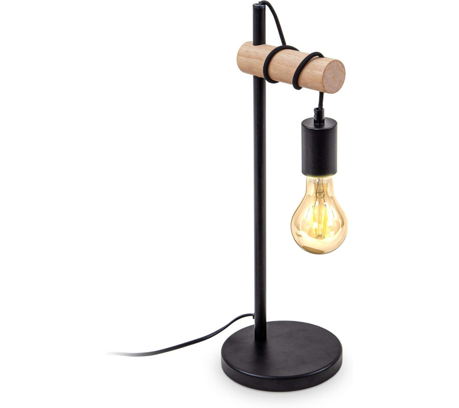 1 spuldzes Vintage stila galda lampa, industriālais dizains, retro lampa, tērauds, koks, apaļa, E27, Spuldze nav iekļauta,