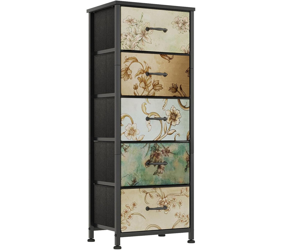 Liela uzglabāšanas ietilpība: šī kumode ar 5 auduma atvilktnēm iederas jebkurā telpā un nodrošina bagātīgu vietu jūsu drēbēm, aksesuāriem un gultasveļai.