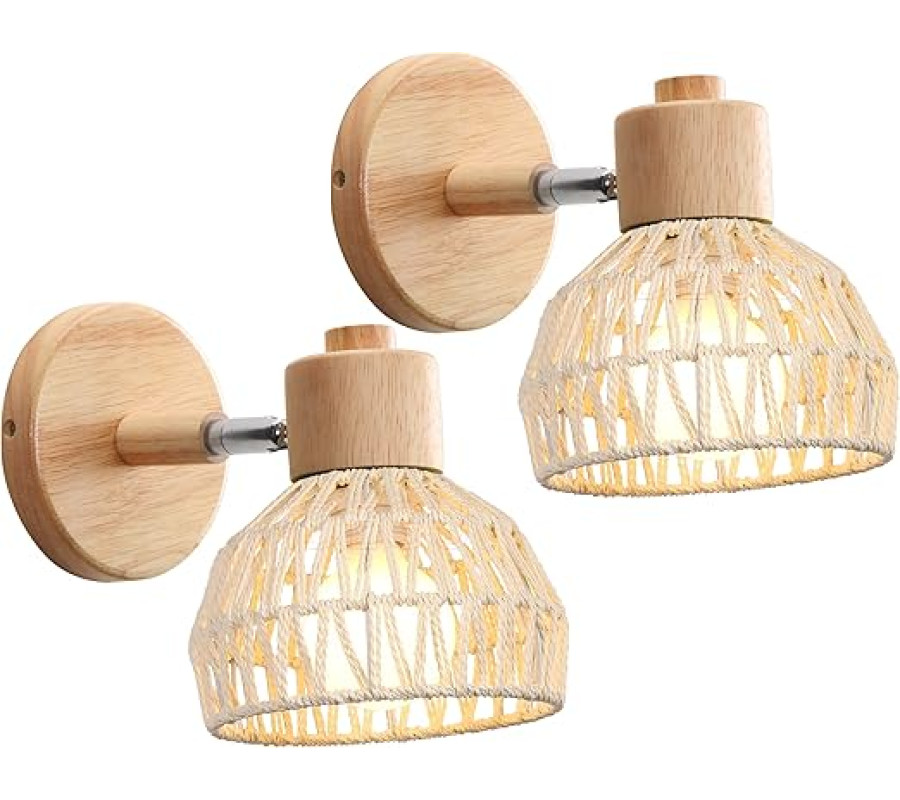 IDEGU 1 gab. iekštelpu sienas lampa 15 cm, regulējamas koka un rotangpalmas retro stila E27 sienas lampas guļamistabai, viesistabai, gaitenim vai restorānam (balta rotangpalma) [energoefektivitātes klase A]