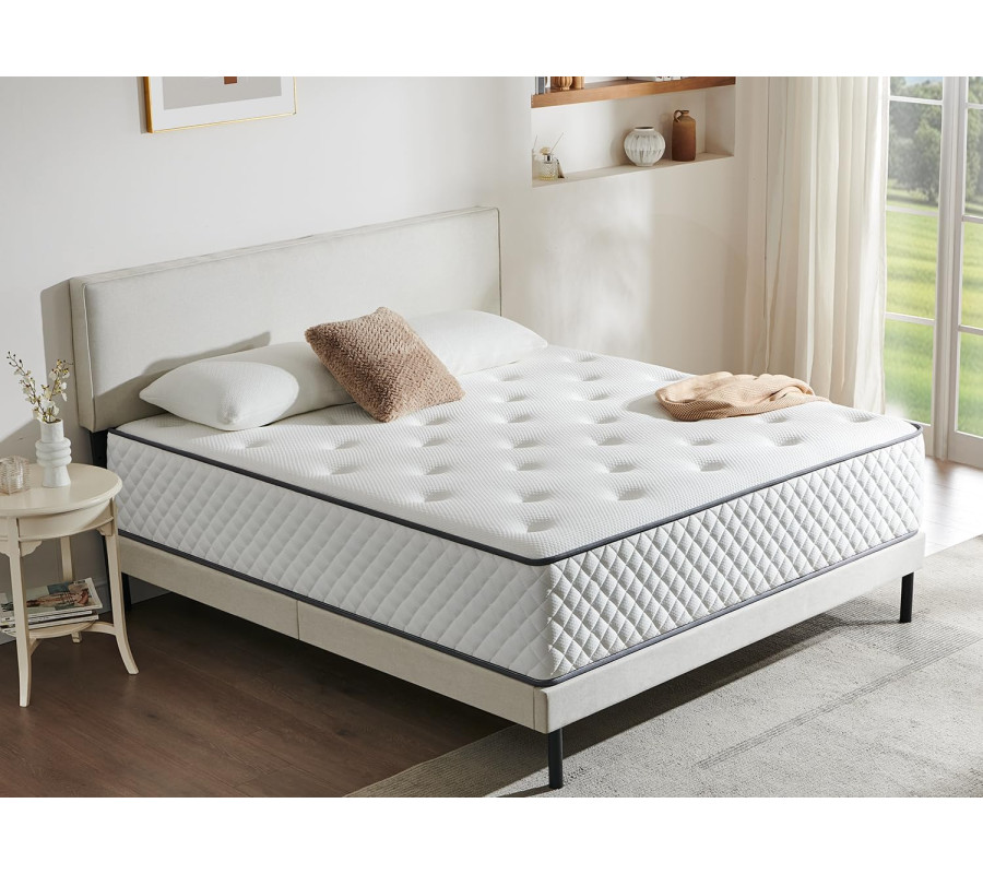 Augsts miega komforts — neatkarīgās kabatu atsperes var nodrošināt ķermenim stabilu atbalstu un nodrošināt, ka jūsu mugurkauls saglabā dabisko izliekumu, efektīvi samazinot spiedienu uz vidukli un muguru. Memory putas nodrošina individuālu piegulumu un komfortu, pamatojoties uz jūsu ķermeņa līknēm un spiediena punktiem. Šis hibrīdais dizains padara matraci gan atbalstošu, gan ērtu miega laikā.