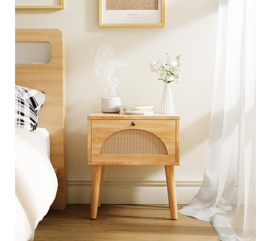 Augstas kvalitātes materiāls: augstas kvalitātes materiāli nodrošina ilgu kalpošanas laiku. Naktsskapītis ar tā kompakto dizainu ir piemērots daudzām telpām, piemēram, guļamistabām, viesistabām un rakstāmgaldiem. Moderno naktsskapīti vienkāršā vintage stilā var viegli kombinēt ar dažādām mēbelēm, un tas piešķirs jūsu istabai izsmalcinātu eleganci.