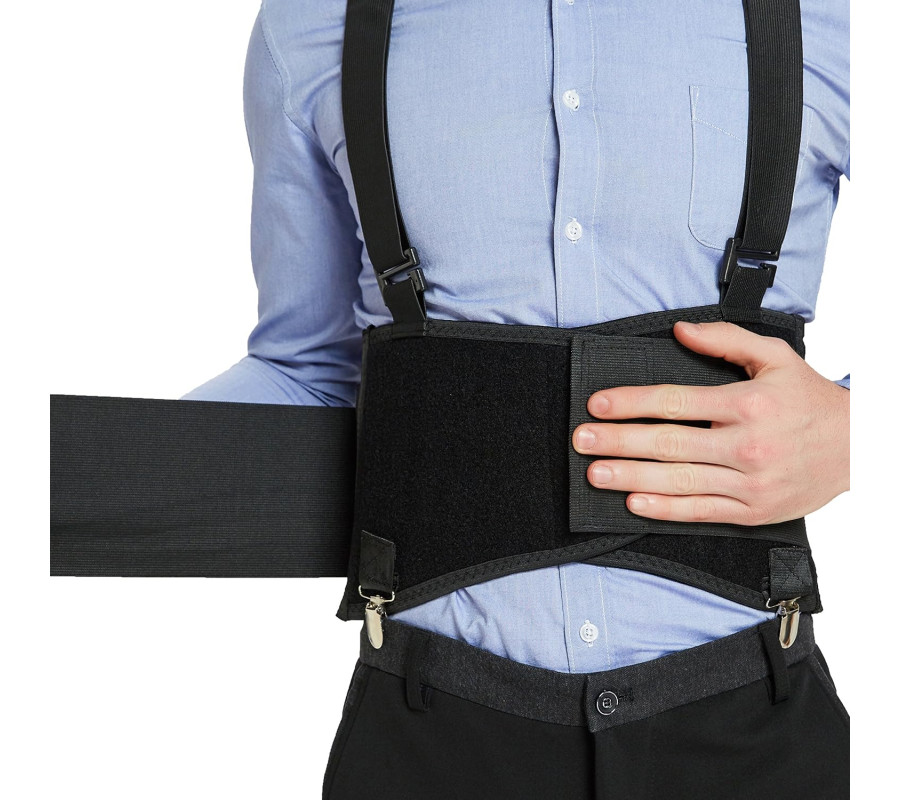 “NeoTech Care” jostasvietas ortoze ar noņemiem bikšu klipšiem un lencītēm - muguras atbalsta josta - regulējama, viegla, elpojoša - plecu maciņi - darbam, stājai - melna (XXL izmērs).