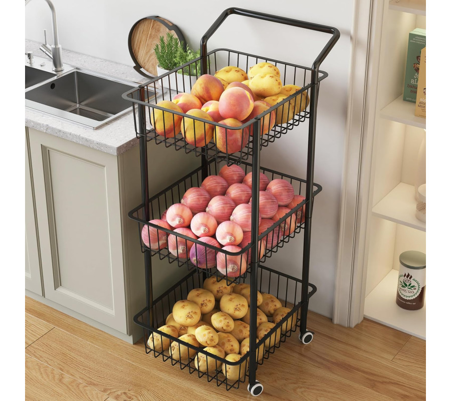 COVAODQ dārzeņu ratiņi virtuvei, melnā krāsā.