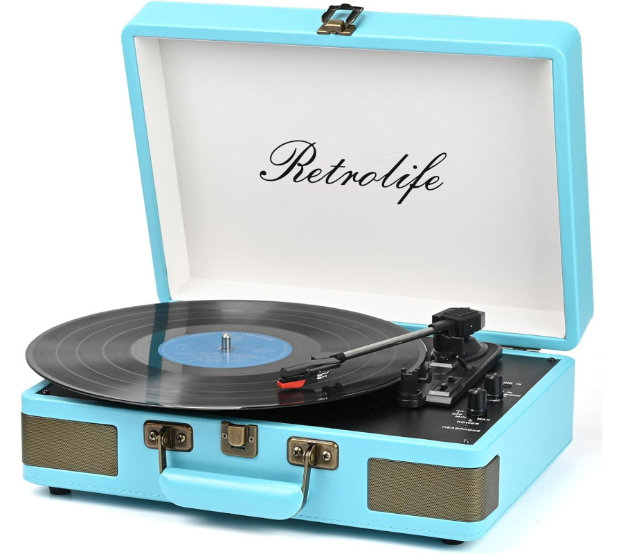Retrolife 3 ātrumu 33/45/78 apgr./min čemodāna stila Bluetooth atskaņotājs.