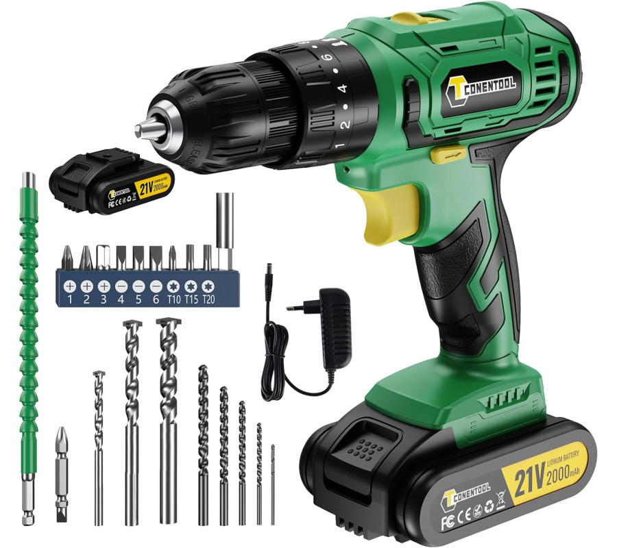 Conentool bezvadu skrūvgriezis 21 V, bezvadu urbjmašīnas komplekts.