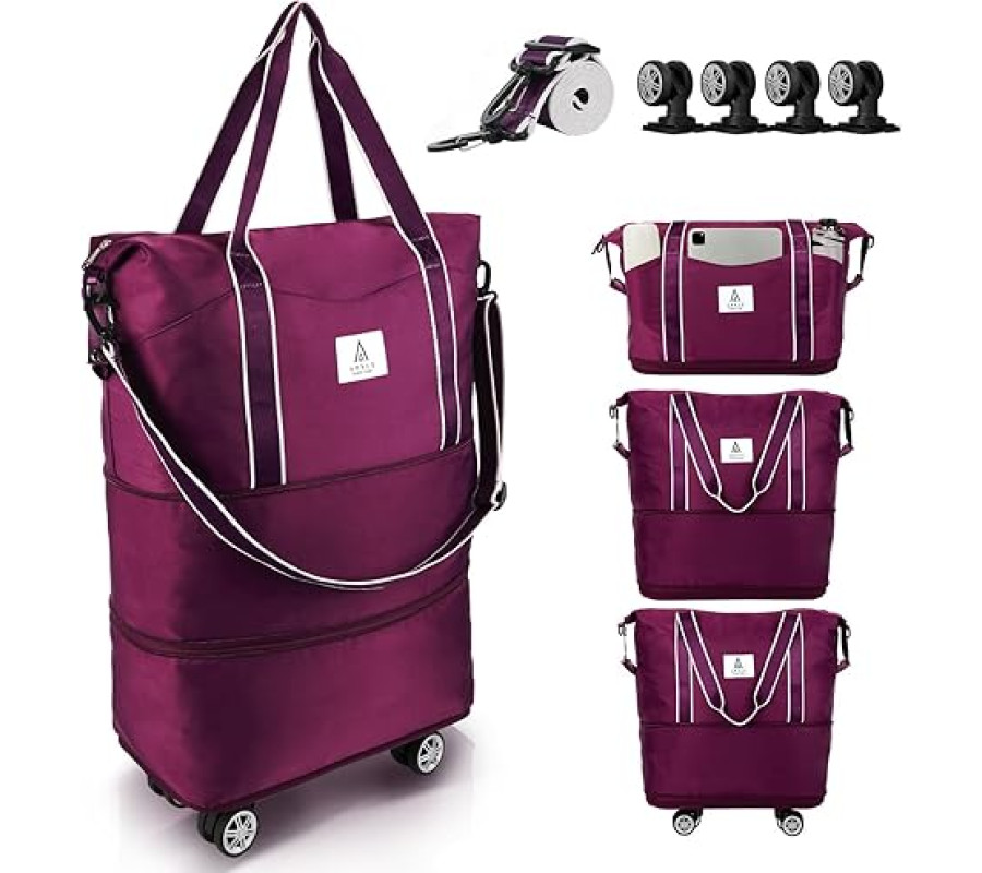 Arxus ceļojumu soma ar noņemamiem riteņiem un regulējamu plecu siksnu, liela, paplašināma, salokāma rokas bagāžas soma ar rokturi,ceļojumam ar lidmašīnu 25L-55L