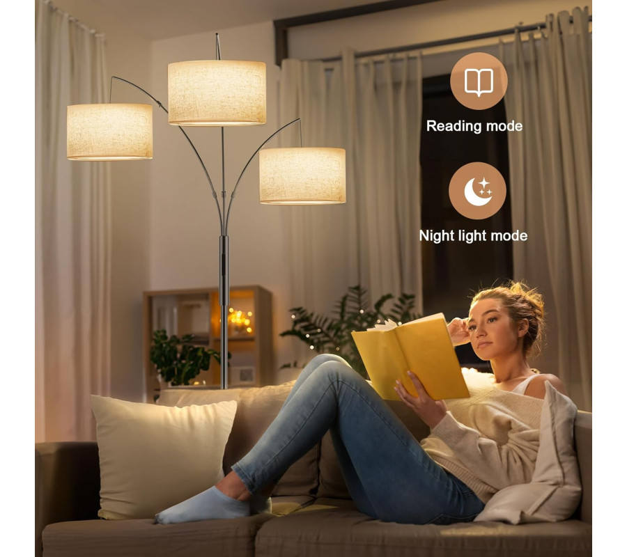 APGAISMO SAVU TELPU AR DAUDZPUSĪBU UN STILU: SIBRILLE inovatīvā trīsgalvu auduma stāvlampa ir ideāls risinājums modernām mājām, kas meklē gan funkcionalitāti, gan eleganci. Šī universālā LED spuldzes konstrukcija novērš biežas nomaiņas un uzstādīšanas grūtības, piedāvājot nemanāmu apgaismojuma pieredzi uzreiz pēc izņemšanas no kastes. Stāvlampa ļauj iestatīt dažādas krāsu temperatūras un spilgtuma līmeņus 3 gaismekļiem.