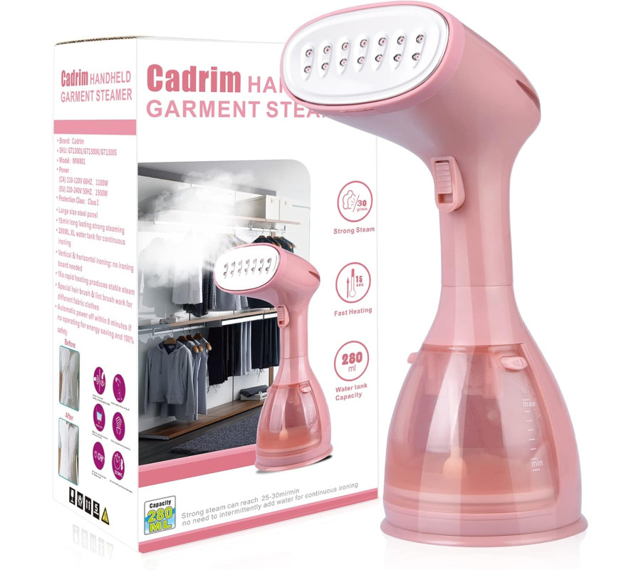 Pārnēsājams tvaika gludeklis ar 280 ml ūdens tvertni mājsaimniecībai, ceļojumiem, komandējumiem (rozā krāsā).