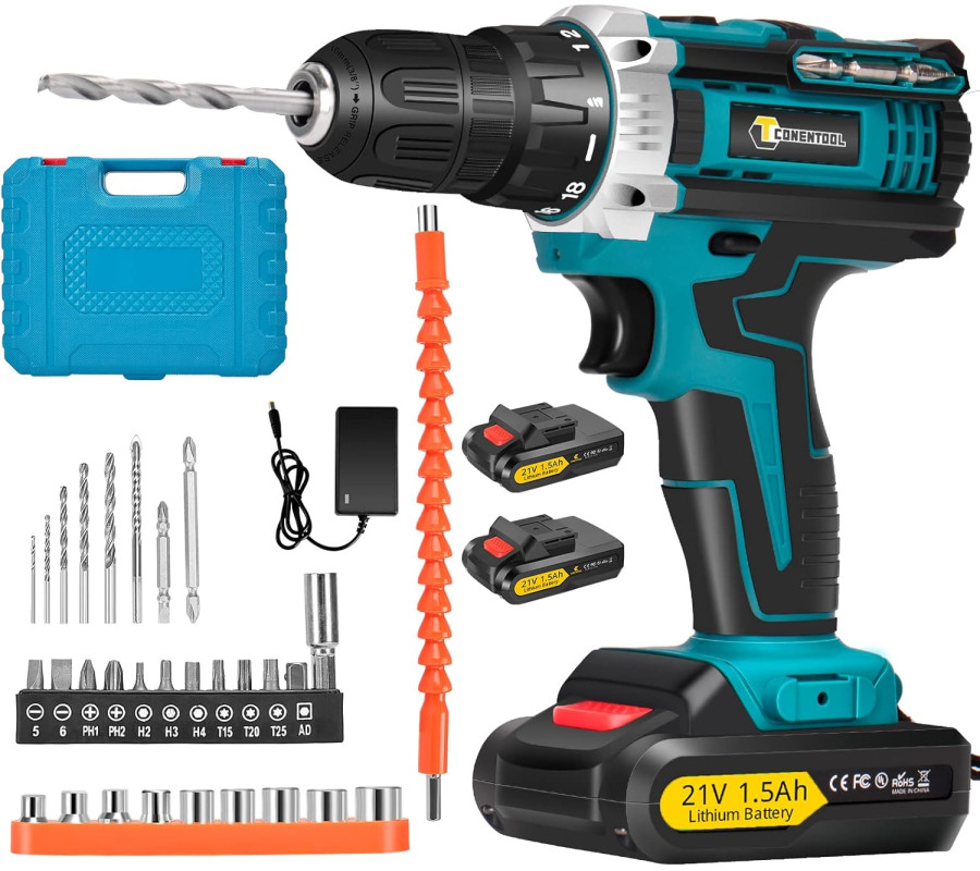 CONENTOOL 21 V bezvadu skrūvgriežu komplekts, akumulatora urbjmašīna ar 2x1500 mAh akumulatoriem.