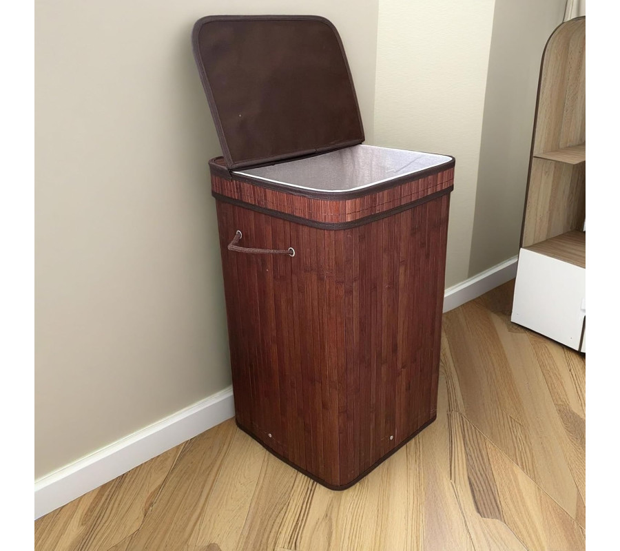- Izturīgs veļas grozs ar vāku, videi draudzīgs veļas grozs, kas izgatavots no bambusa (75 L).