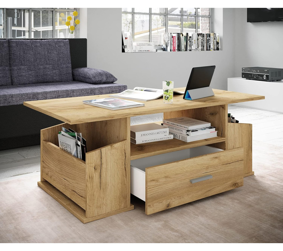 Kafijas galdiņš ar pietiekami daudz vietas uzglabāšanai