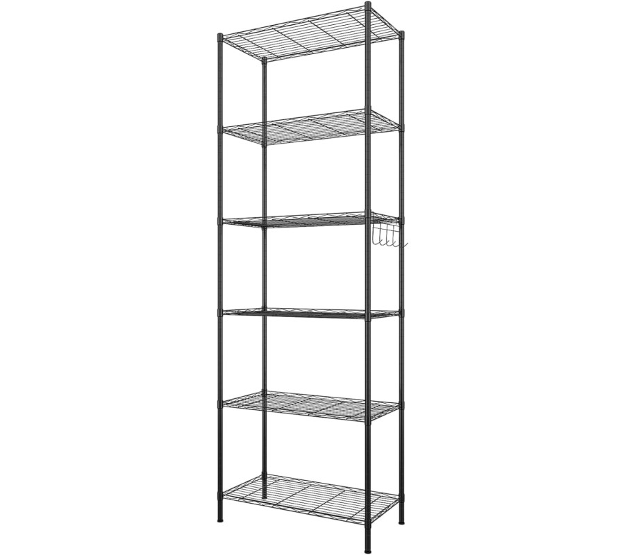 Himimi regulējams uzglabāšanas plaukts, stāvplaukts ar 6 plauktiem, virtuvei, vannas istabai, priekšnamam, dārzam 54 x 29 x 160 cm, melns