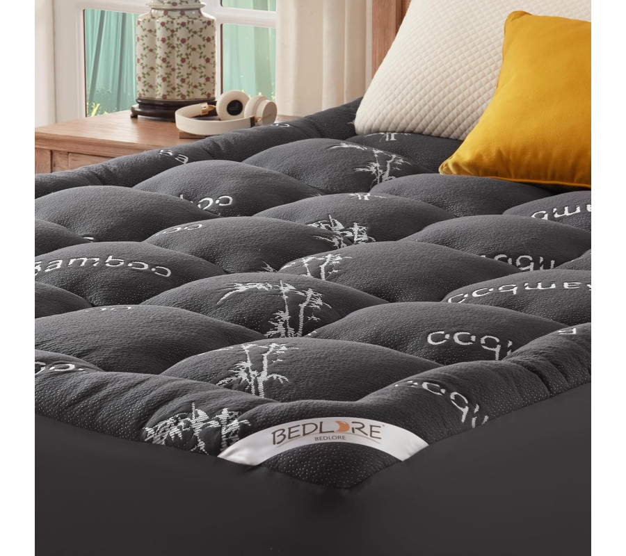 Viskoze, kas iegūta no bambusa, biezs, elastīgs matrača pārvalks ar spilvenveida virsmu un kabatām 160x200 cm matracim, mīksts, elpojošs matrača virsmatracis muguras sāpju mazināšanai (tumši pelēks).